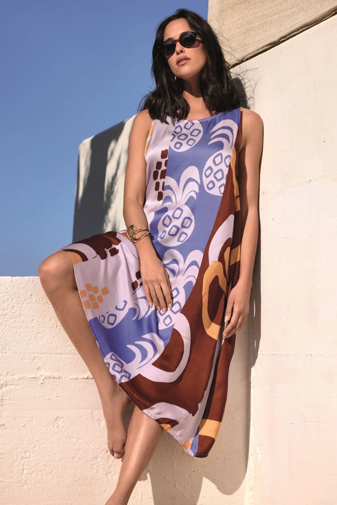 Des motifs de maillots de bain intemporels sont associés à des sous-vêtements assortis en fibres naturelles telles que le coton, offrant aux femmes un look sobre de vacances.